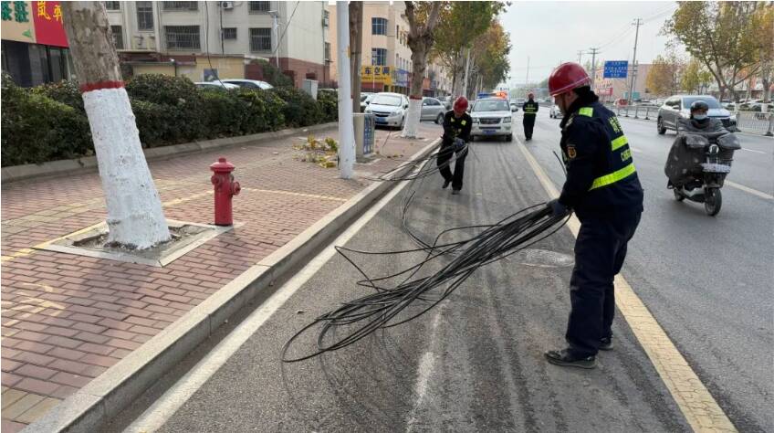 面临抛弃杆线产权不明、撤除危险高的问题,市中区安排有关部门通过现场勘测、材料追溯等方法明晰产权,无主杆线由执法局牵头兜底处置,采纳“先移线、后拆杆、再修正”流程,同享施工资源下降额定开销。对环绕线缆,作业人员采纳“捋、捆、收、剪、埋”五步法,对路途两边、居民小区的抛弃线缆、乱拉乱接线缆完全整理,对需保存的线缆标准捆扎,对符合条件的弱电线路全力推进下地改造,一手抓“存量整理”,一手抓“源头管控”,左右开弓筑牢整治成效。